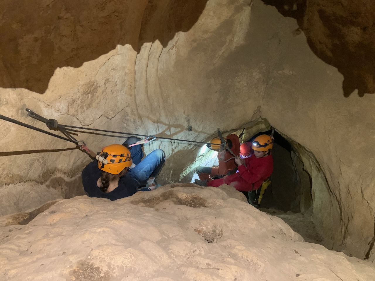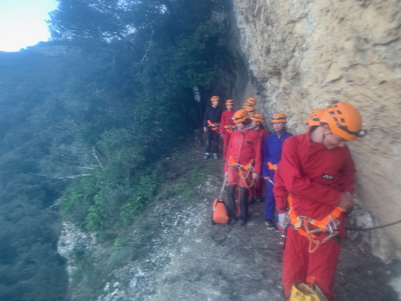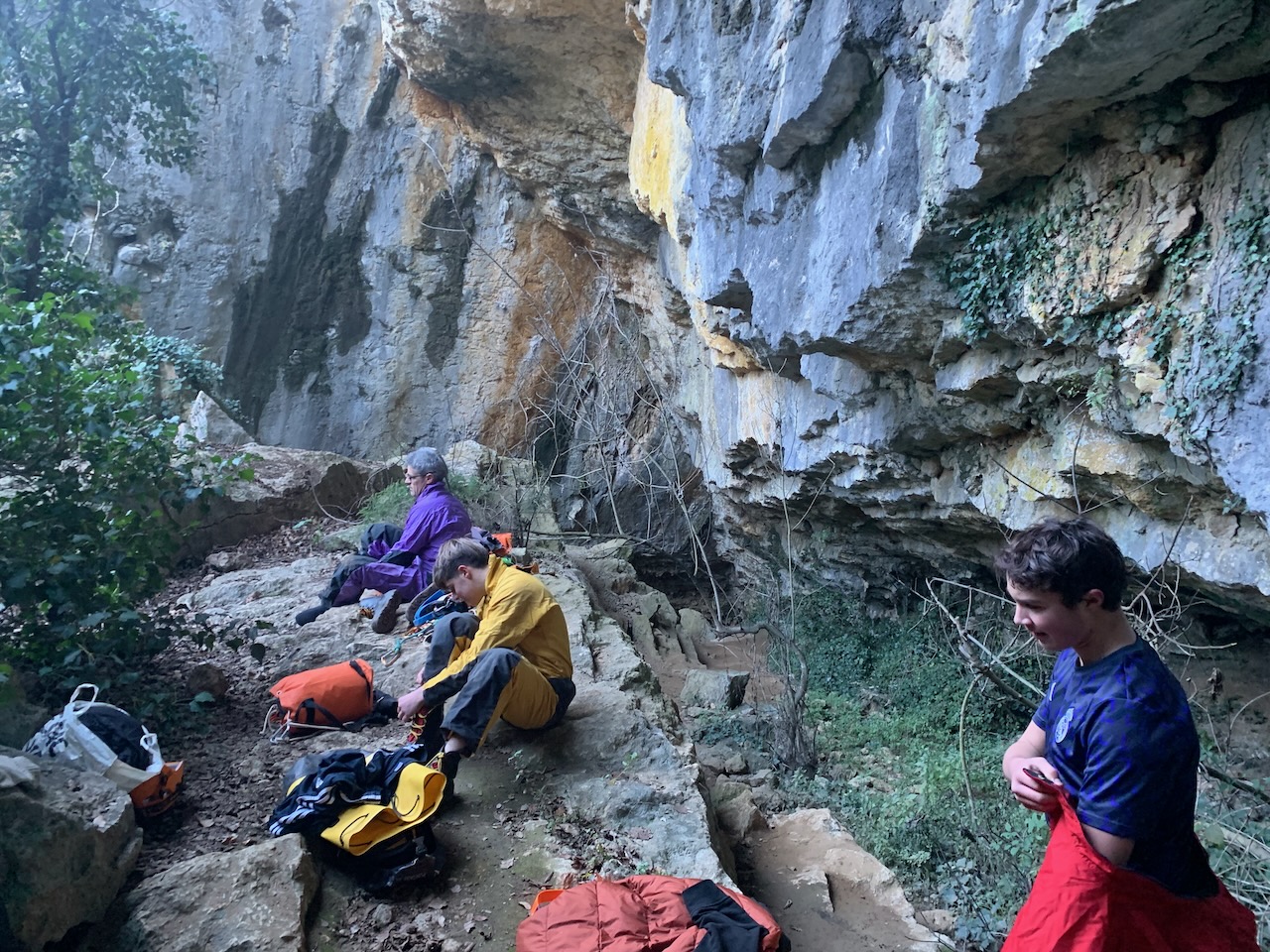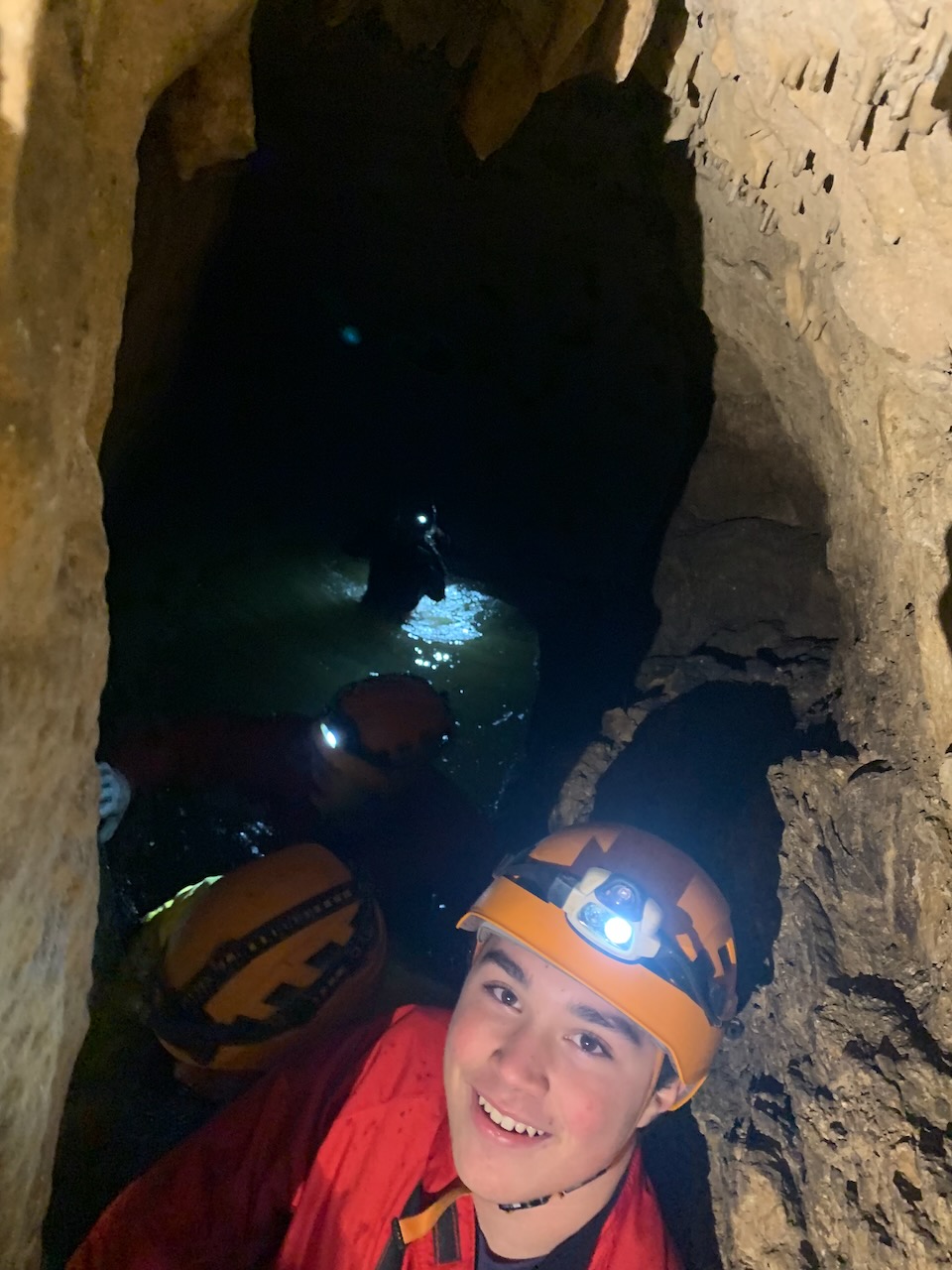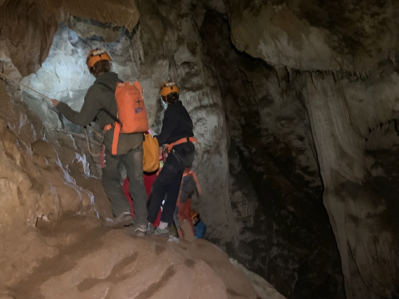 Après un rappel de 35m nous avons observé à l’aide de lampe UV, les petits insectes et autres faunes cavernicoles dans la grotte. Un deuxième rappel de 20m et nous sommes sortis de la grotte par des bassins remplis d’eau à moins de 10°. Super froid !