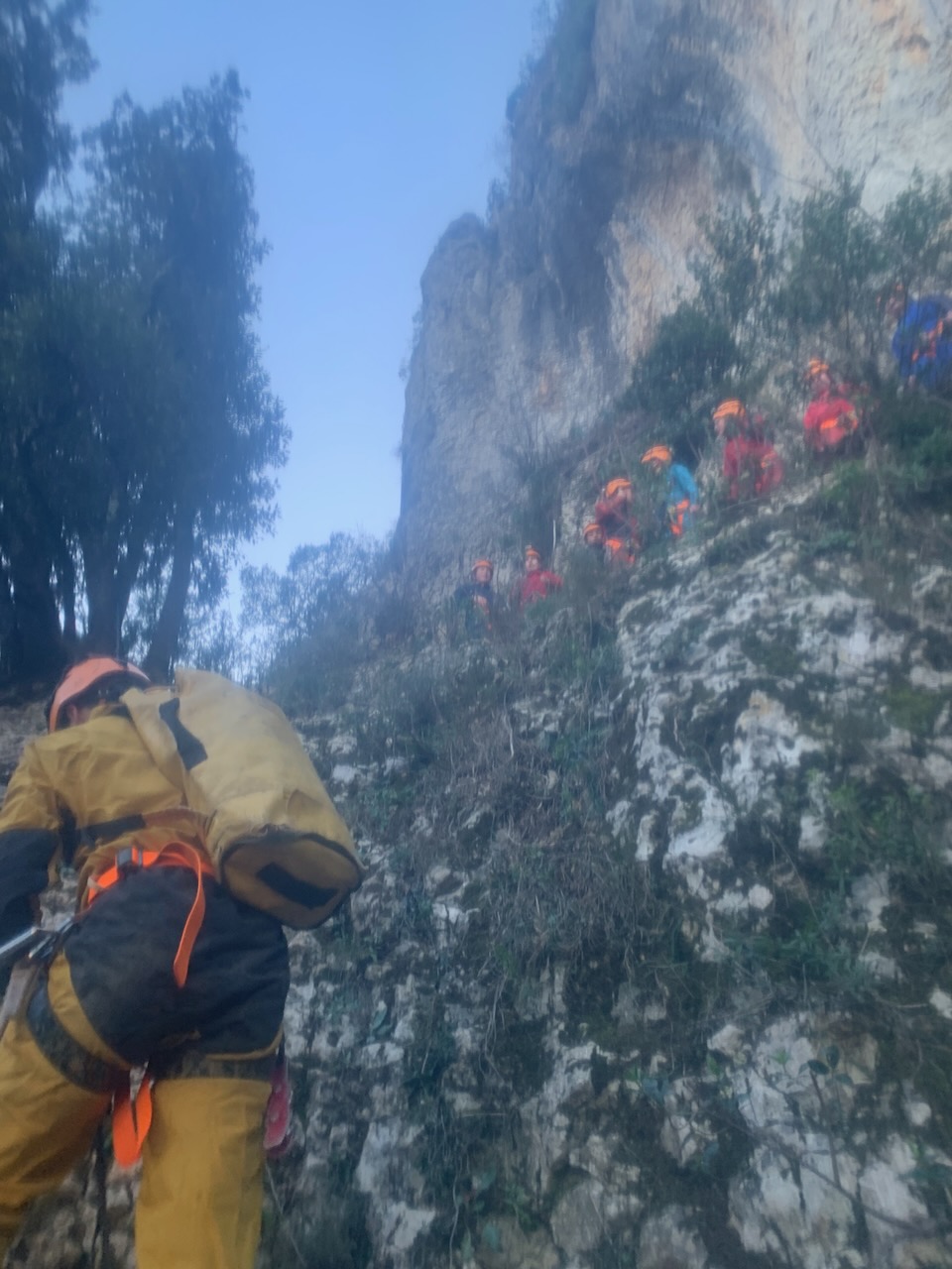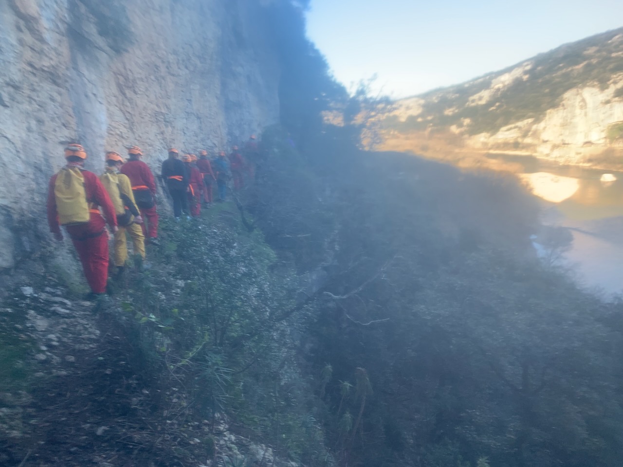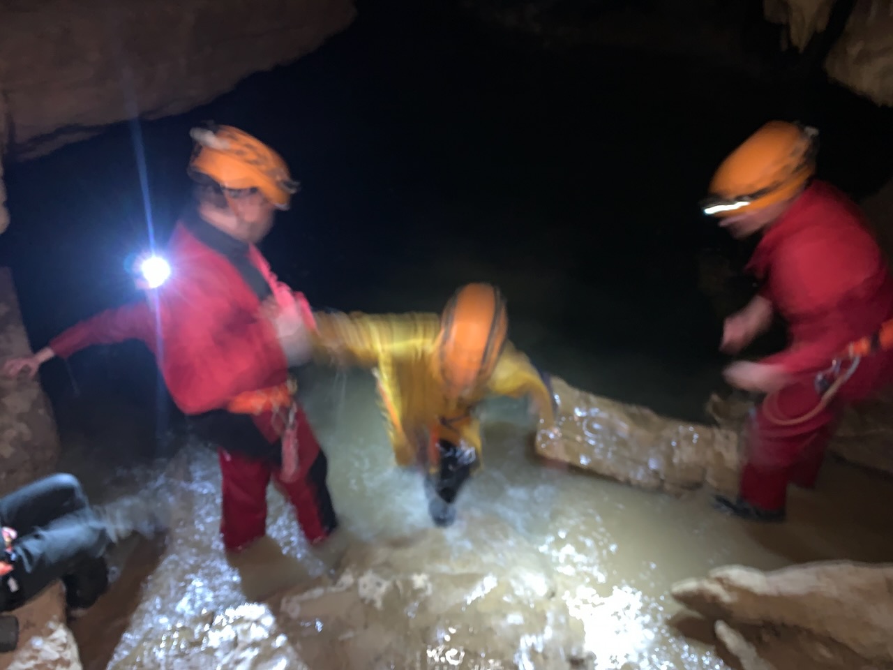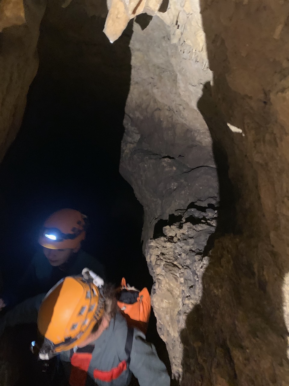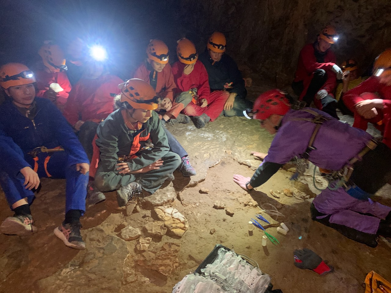 Après un rappel de 35m nous avons observé à l’aide de lampe UV, les petits insectes et autres faunes cavernicoles dans la grotte. Un deuxième rappel de 20m et nous sommes sortis de la grotte par des bassins remplis d’eau à moins de 10°. Super froid !