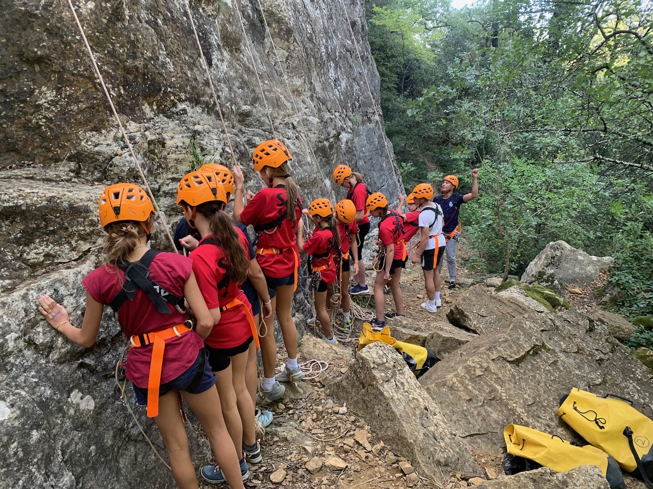 Aujourd’hui pour le cours de spéléologie, nous sommes allés à la falaise de base de Salavas à vélo. Nous étions accompagnés de Stéphane. Nous nous sommes entraînés à faire des montées et descentes sur corde pour nous faire un rappel après deux mois sans spéléologie. Nous avons révisé les convertions et les fractionnements; cela consiste à passer un obstacle sur la corde. Puis nous avons pratiqué sur la falaise. Romane, en faisant sa conversion pour descendre, a emmêlé la corde dans son descendeurs 😂. Puis nous sommes rentrés très rapidement alors que nous n’étions pas en retard ⏰.Encore une bonne journée à la spéléologie.